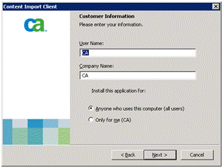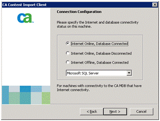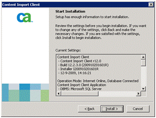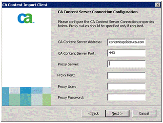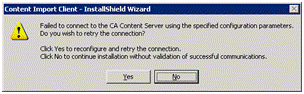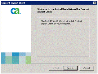 Before continuing with the Content Import client installation please review the online technical document TEC405649 - Testing connectivity to the ACME server for signature and content updates. During the installation of the client the installer will test connectivity to contentupdate.ca.com - performing this step will make sure the server you are installing on is capable of accessing the internet.