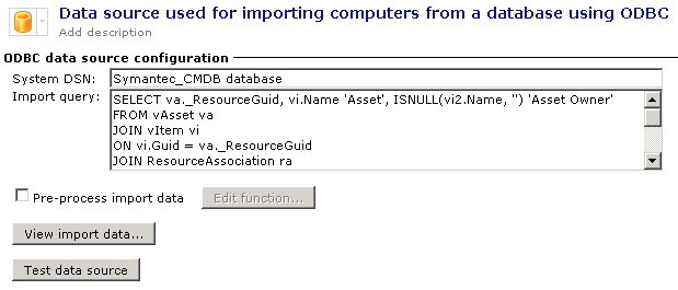 A Data Connector data source is needed to access the user's data so that a Data Connector import rule can later import this into the Symantec Management Platform database. For more information on how to use Data Connector or how to use different data source types, refer to the following article: