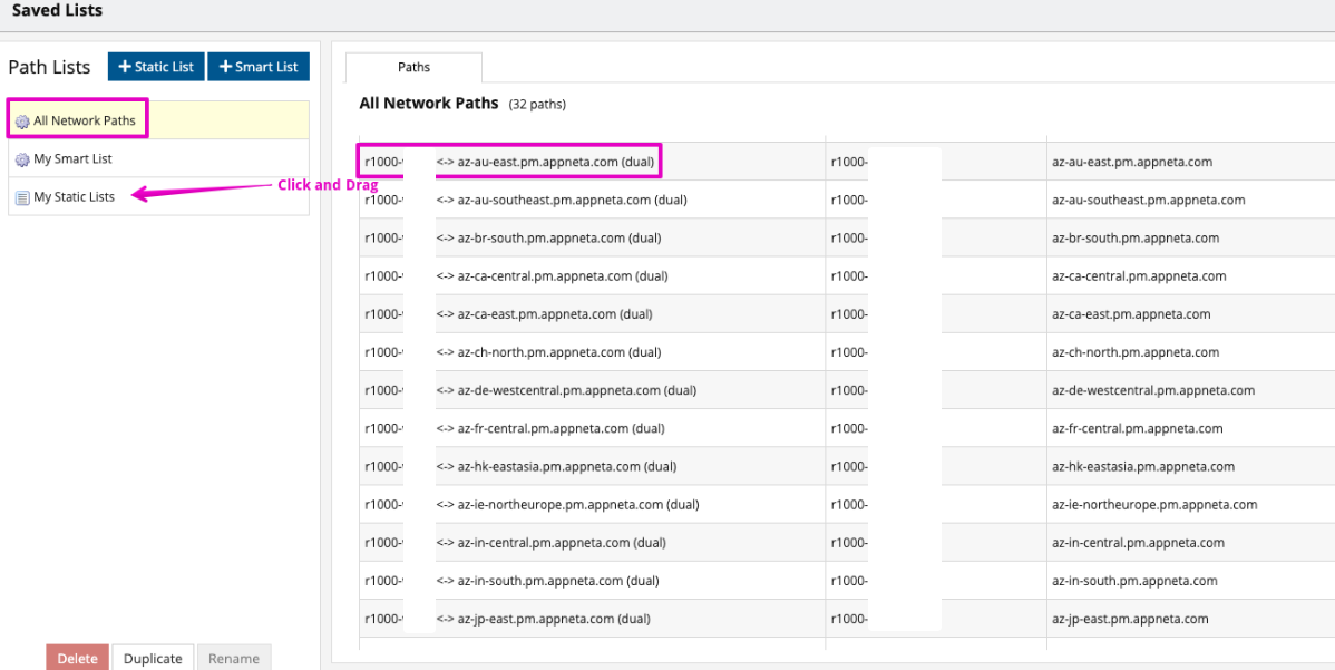 After creating the static list, click on "All network Paths" and you can choose any path and drag it into the list.