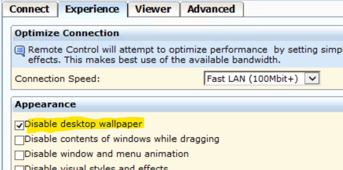 During RC session with option "Disable desktop wallpaper", the wallpaper is disabled and the background is black.