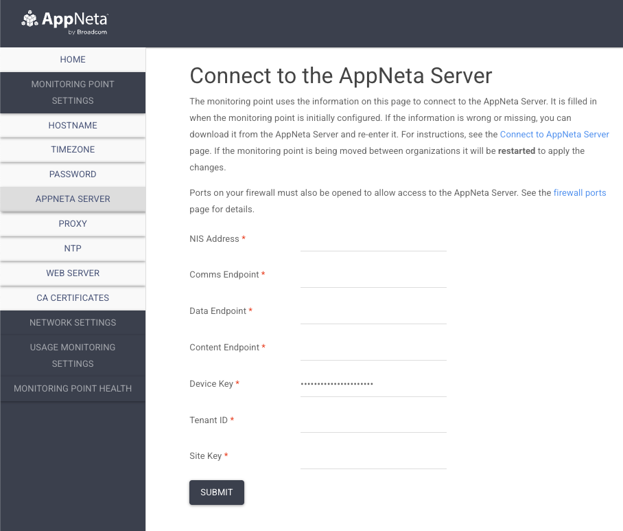 In AppNeta EMP version 14.1 and newer, several fields that need to completed for a monitoring point to connect correctly. This normally occurs during initial setup where the device i provisioned with a USB stick or other method.