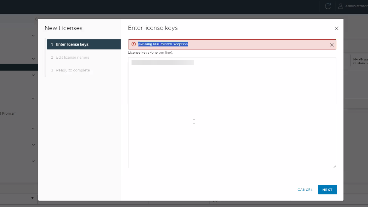 After running the VCF+ or vSphere+ unsubscribe script, a customer may not be able to re-add licenses back into the vCenter UI