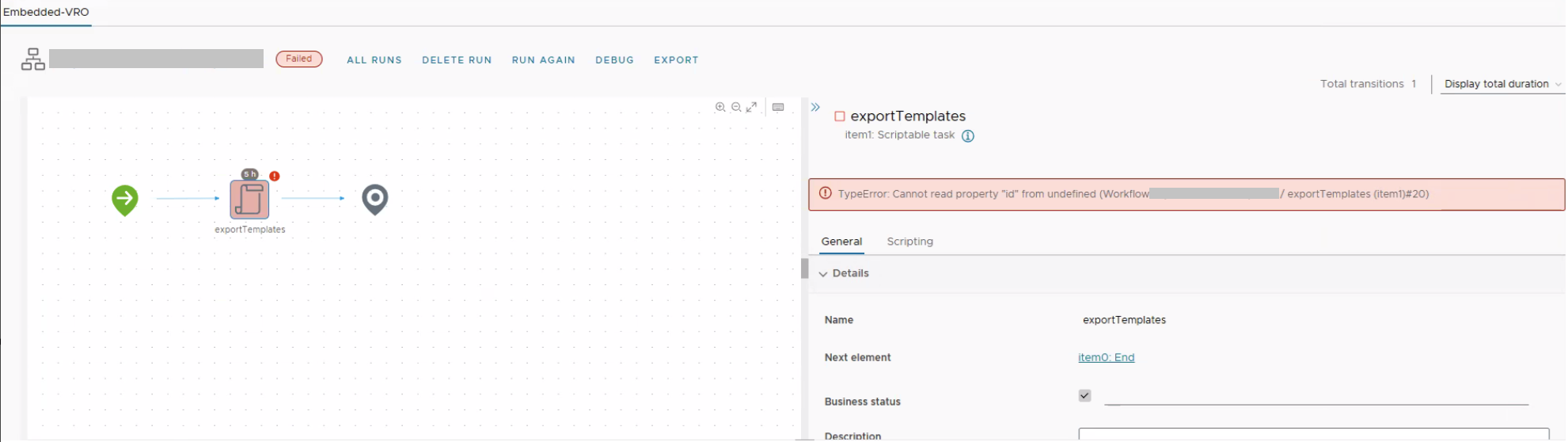 • The workflow, which previously executed successfully, started failing after a decommissioned vCenter instance was referenced