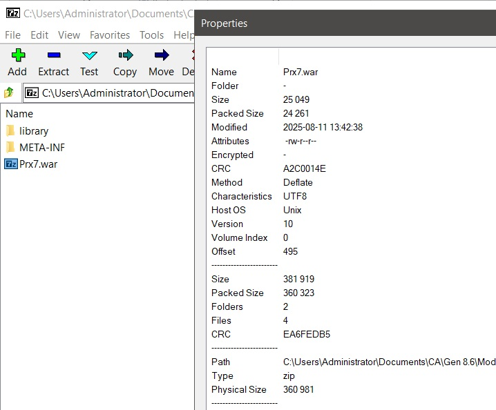Therefore in directory proxy\java\deploy\Prx7 have used the 7-Zip utility to add the ServerPstep_Remote.class file i.e. S_PROXY_NLS_ÑÁMË_Remote.class to the Prx7.jar file inside the Prx7.war file (WEB-INF/lib folder) within the Prx7.ear file built by the Gen Build Tool