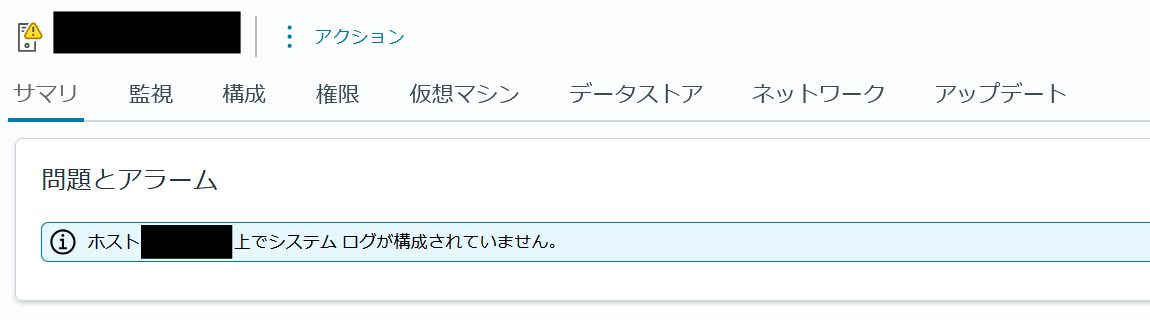 ESXi ホストのサマリ画面に「ホスト <Host Name> 上でシステム ログが構成されていません」の警告が表示される