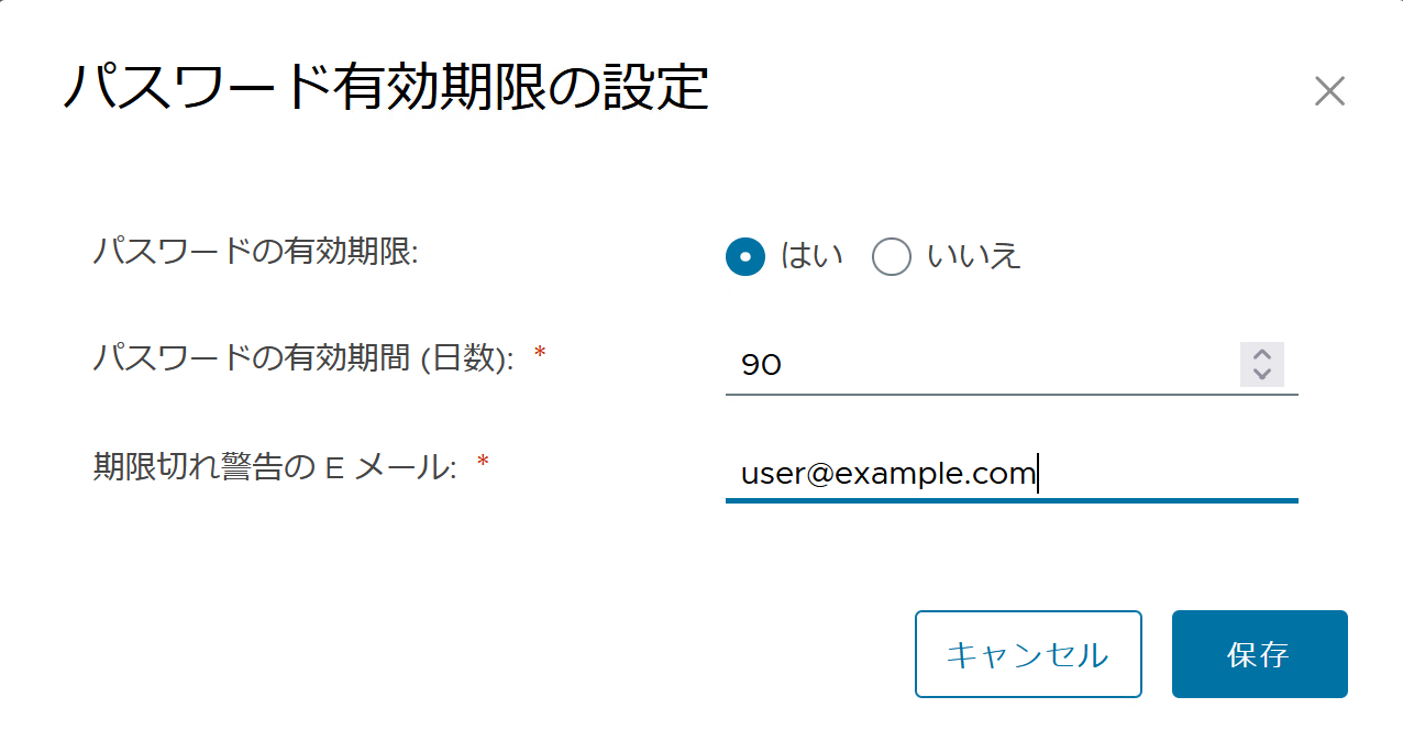 この方法ではアカウントの有効期限ポリシーを OS で直接更新するため、UI の要件を回避できます。